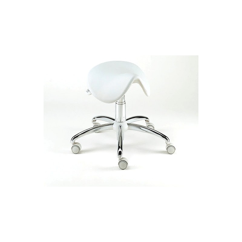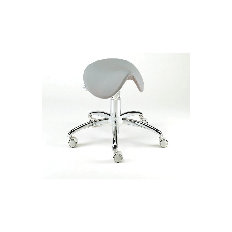Seggiolino con seduta ergonomica a sella , possibilità di variare l'altezza tramite pistone pneumatico e l'inclinazione della seduta , le regolazioni di questo seggiolino permettono di mantenere una corretta postura , l'inclinazione della seduta aiuta ad un miglior avvicinamento in fase lavorativa evitando una innaturale protusione del collo, il seggiolino a sella è particolarmente indicato nell'uso di sistemi ingrandenti.