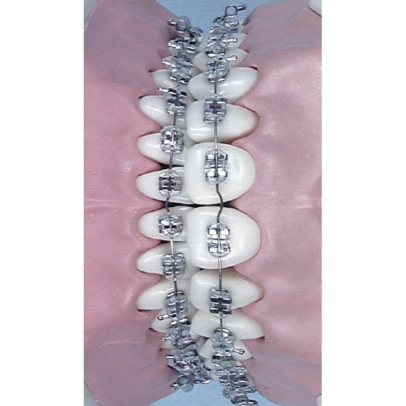La piega a V posta in corrispondenza della linea mediana evita indesiderate dislocazioni dell’arco assicurando l’azione terapeutica prevista dalla forma prescelta.