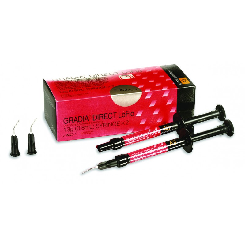 GC Gradia Direct Flo è una resina ibrida, radiopaca, fluida e fotoindurente che rende più semplice la realizzazione di restauri con tecnica sandwich grazie alle ottime caratteristiche di fluidità e all'applicazione diretta dalla siringa. GC Gradia Direct Flo has been specially designed for use in conjunction with GC Gradia Direct and the new shades are a perfect match to the colour concept of this well-liked, easy to use and highly aesthetic composite.